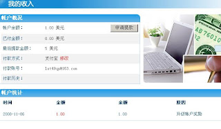 虽然本人很不信那些推荐下线的方式来赚钱,有的时候还很鄙视,因为感觉总有一种欺骗性质的味道!并且感觉收入没有保障,不过今天我向大家推荐FreeSurvey–调客网。欢迎来到调客网!填写每份问卷的奖励约为1-10美元;推荐朋友注册,可以获得持续性收入;新产品上市前,您先得到最前沿资讯;完全免费,而且永远免费!作为菜鸟的我确实收到了真金白银,那时没去推荐下线,不过是因为一次调查,更新了一次资料。得了6元钱,通过支付宝得到了money!感觉比较信赖,值得向大家推荐!下面是FreeSurvey–调客网官方给的资料,拿来给大家看看![FreeSurveyASIA调客网]会员通讯尊敬的 您好!我们很高兴的通知您,调客网第五次改版基本完成啦!这一次的改版,不仅使我们的网站好看了很多,我们也开始启用面向整个亚洲地区的新域名:www.freesurveyasia.com。更关键的是,调客网已经开始与国外的一些调查公司取得合作,他们将会通过调客网来发放调查问卷。我们现在有2个项目正在进行中,不过只有符合要求的部分会员才会收到我们的邀请邮件。我们相信以后的调查问卷一定会越来越多!更大的好消息是,调客网最新推荐计划也已于10月底启动!请登录您的帐户,点击“推荐中心”查看详细的奖励方案,并获取您的个人推荐链接! 设计这个最新奖励方案时,我们的想法是帮助会员建立一种持续收入的管道,我们诚邀您来一起分享网络经济的一杯羹!温馨提示:为了庆祝调客网第五次改版成功,11月15日前升级帐户的老会员,或者激活帐户的新会员,都可以获得1美元(最低提款金额现为5美元)的奖励!以表示调客网对所有支持我们的会员的感谢!如果您有任何疑问或建议,欢迎随时联系我们!下面是我得到的money,哈哈!注册地址:e82a09df